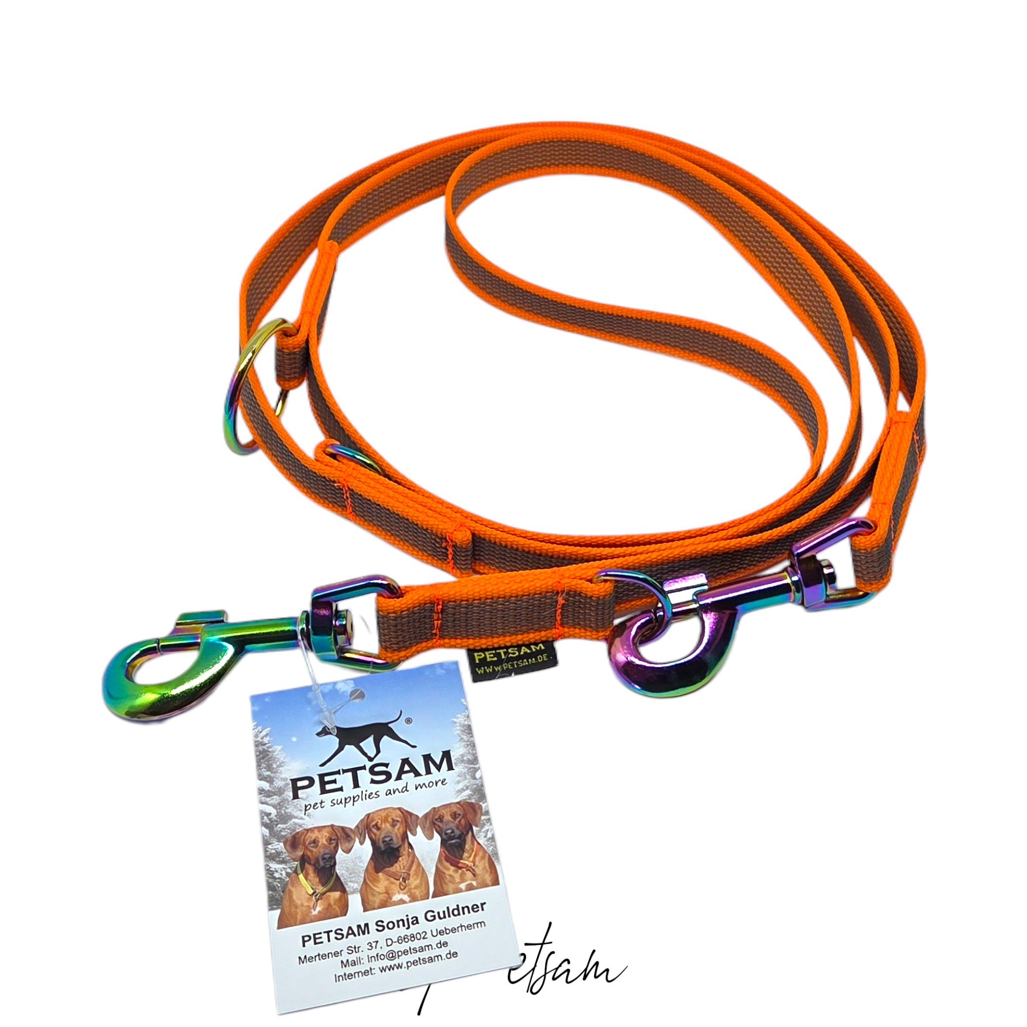 Gummierte Hundeleine – 3-fach verstellbar mit Regenbogen-Beschlägen