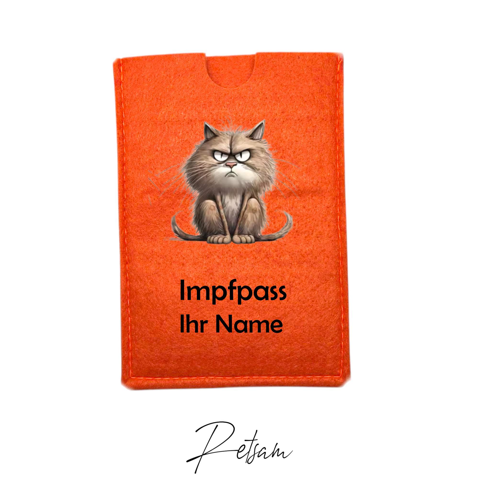 Besonderes Highlight ist die Illustration einer wunderschönen Katze auf der Vorderseite – ein echter Hingucker, der garantiert für Schmunzeln sorgt. Darunter steht der Schriftzug „Impfpass“ in eleganter Schrift.