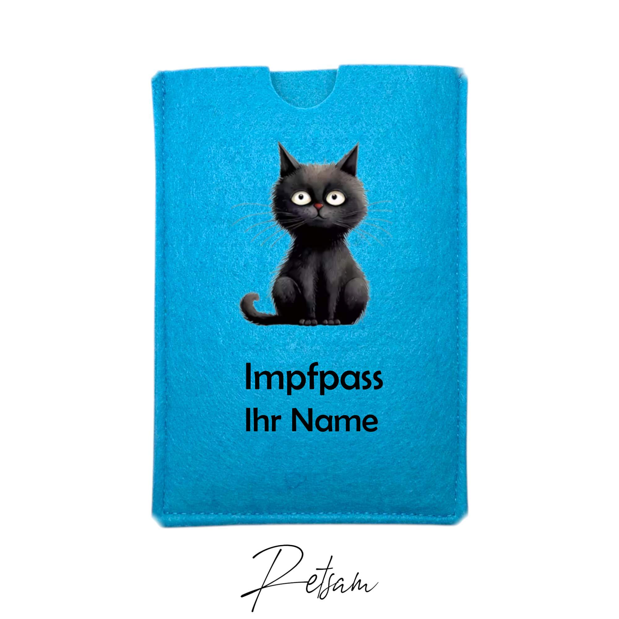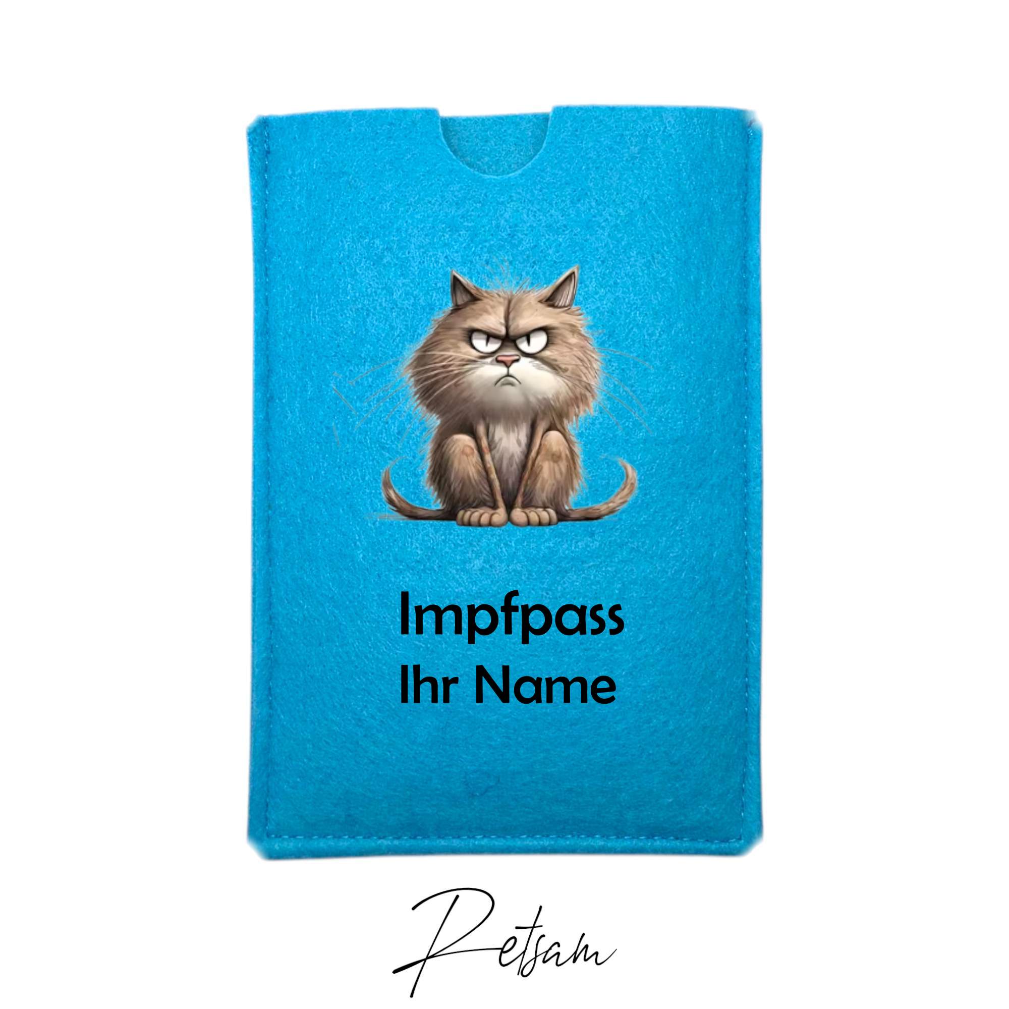 Besonderes Highlight ist die Illustration einer wunderschönen Katze auf der Vorderseite – ein echter Hingucker, der garantiert für Schmunzeln sorgt. Darunter steht der Schriftzug „Impfpass“ in eleganter Schrift.