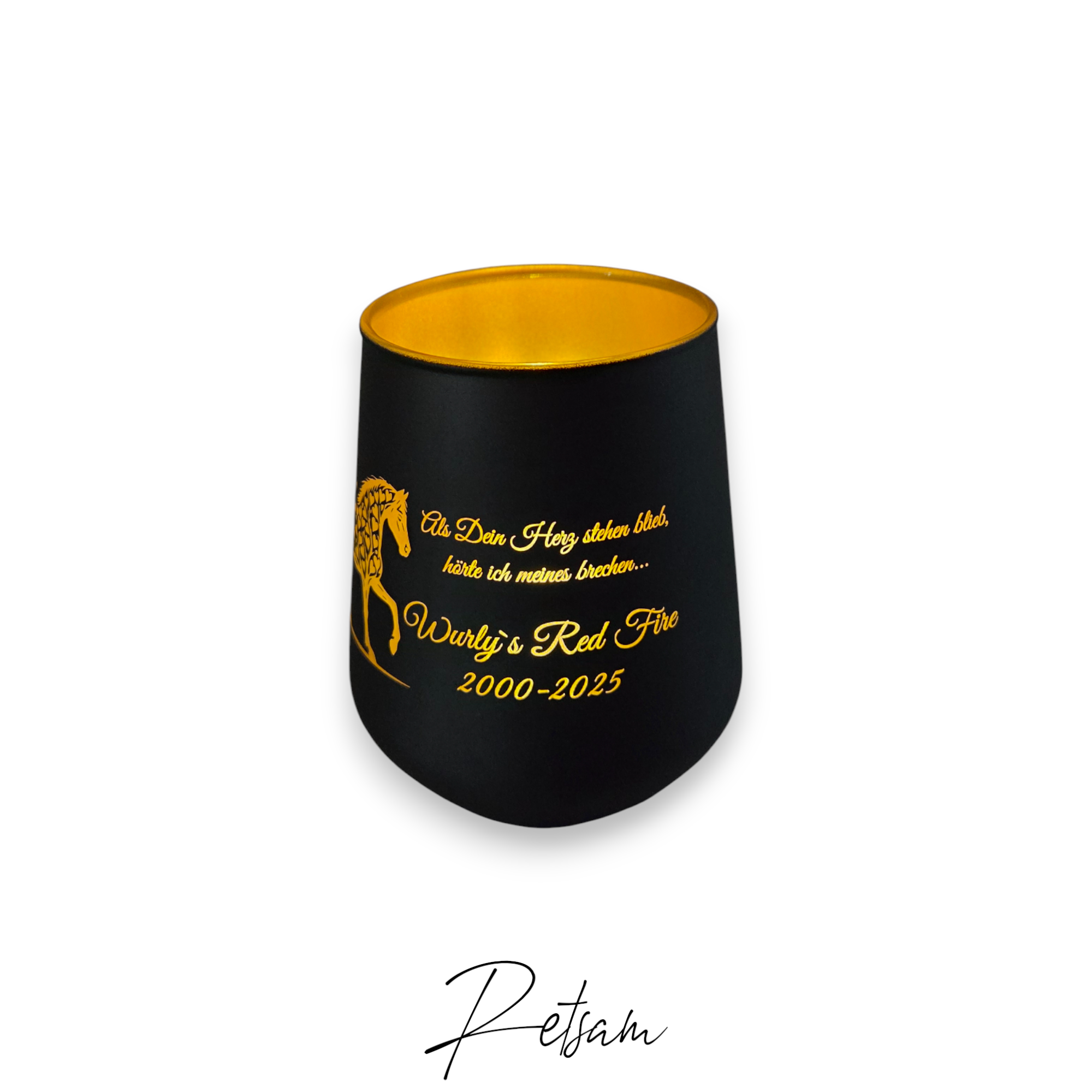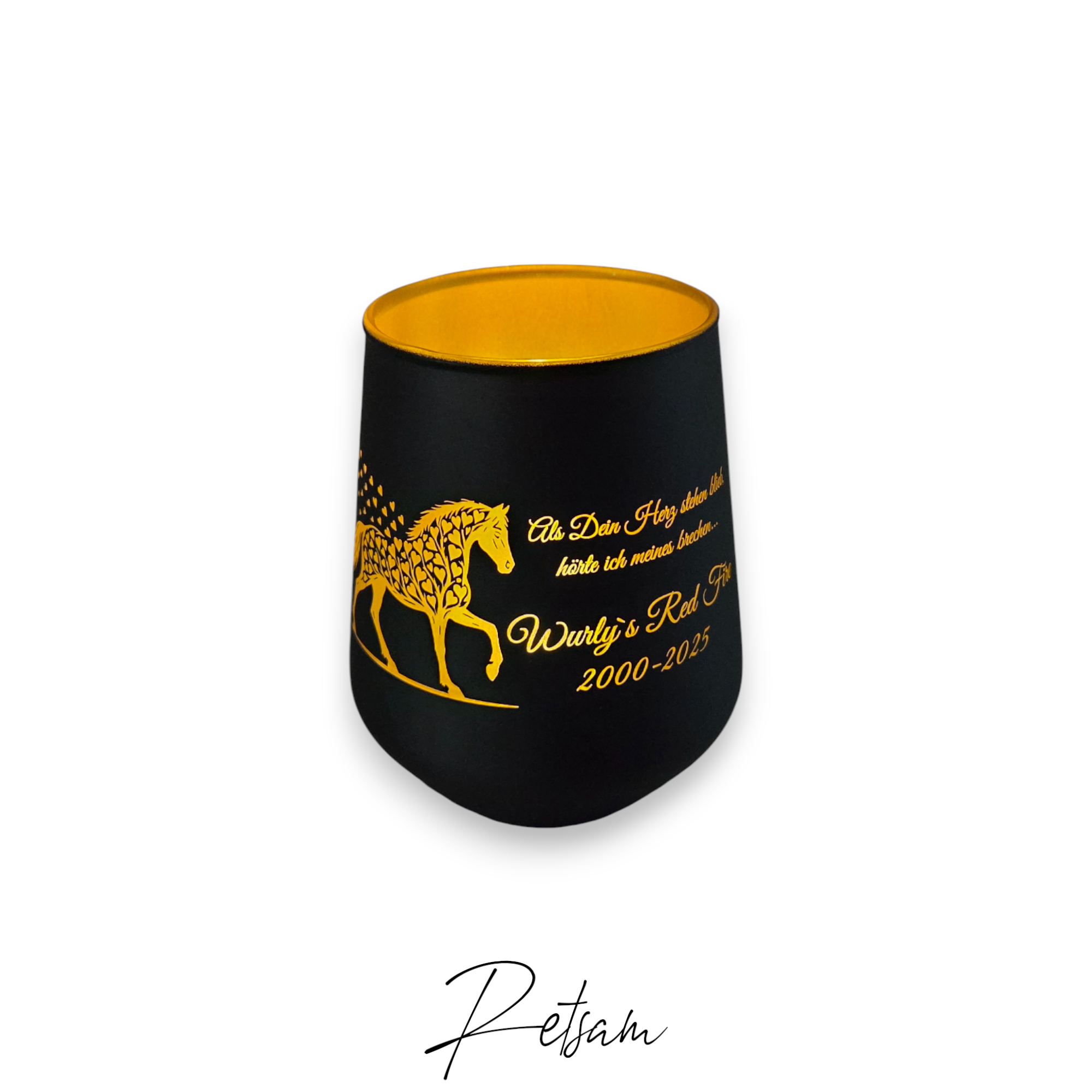 Als ehemaliger Pferdebesitzer weiß ich um den Schmerz, wenn sie gehen müssen und als kleine Manufaktur gestalten wir jedes Stück mit Hingabe und Liebe zum Detail. Jedes unserer personalisierten Gedenklichter ist ein Unikat – gefertigt mit dem Wunsch, Ihnen etwas Bleibendes zu schenken.